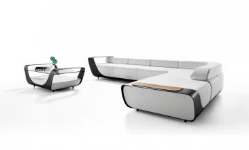 Chauffeuse d'Angle Elite Noir - Coussins Blancs