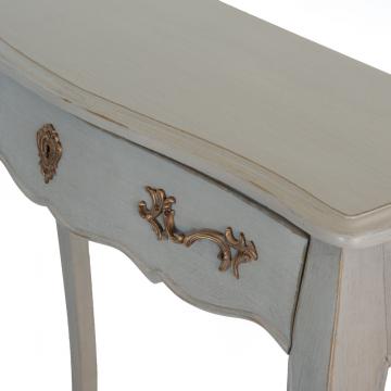 Apportez une touche d'élégance discrète à votre intérieur avec cette console taupe au style classique. Son tiroir pratique vous permet de ranger vos petits objets, tandis que ses lignes galbées et sa finition douce créent une ambiance chaleureuse et raffinée. Parfaite pour habiller une entrée ou un coin de pièce avec charme et simplicité.
