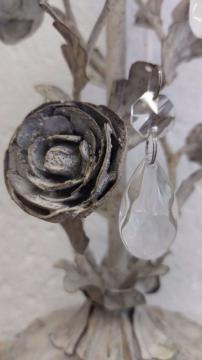 Le pied est habillé de roses et boutons de rose en métal et de pampilles en verre.